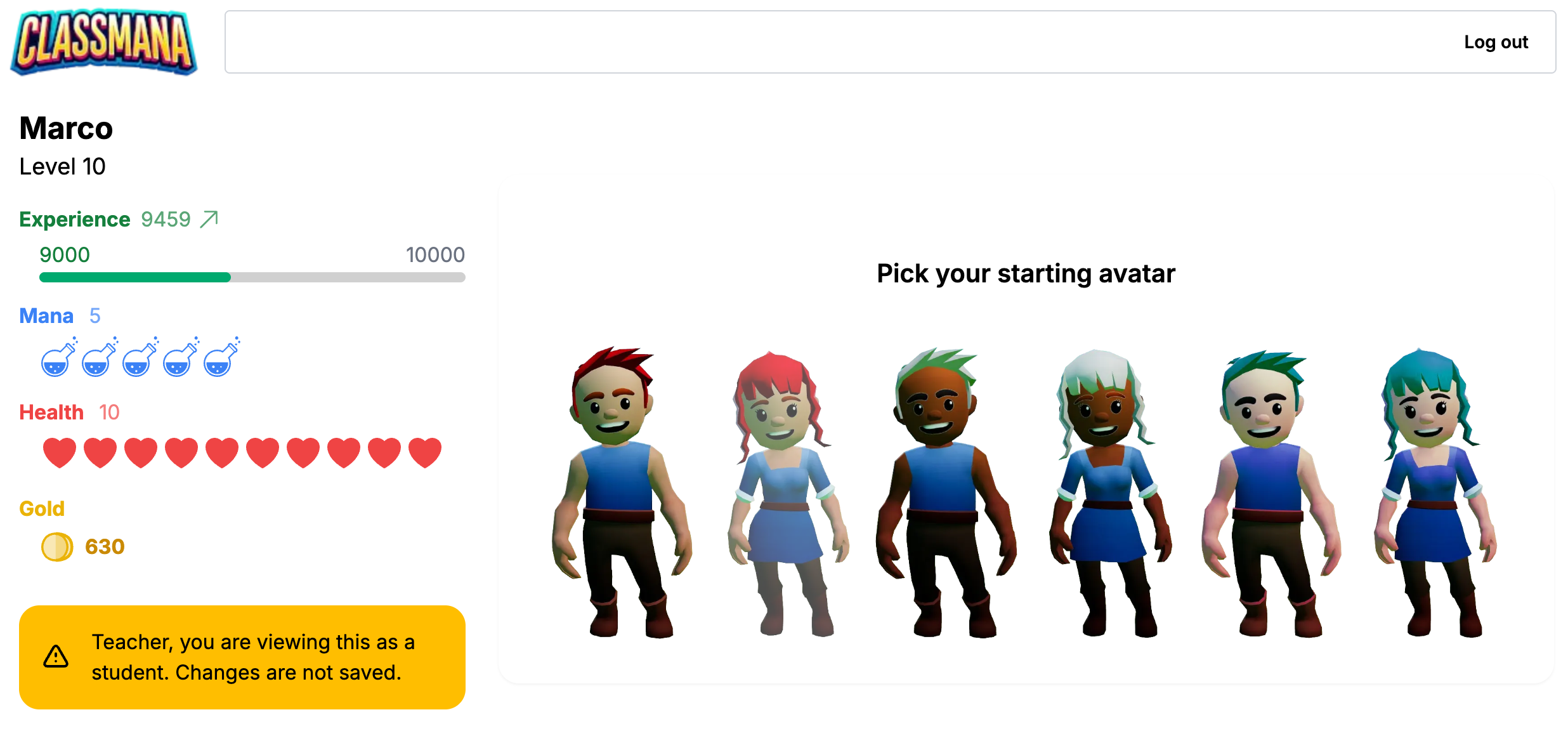Teises etapis saavad teie õpilased sisselogimise. Seejärel saavad nad oma kontole sisse logida ja oma avataari kohandada. Nende avataarid kuvatakse klassi armatuurlaual. Iga taseme tõusuga saavad õpilased varustada lahedamaid esemeid. Kokku on 35 taset, nii et saate neid kogu õppeaasta jooksul kaasatud hoida, kui nad tõuseksid iga nädal ühe taseme võrra.